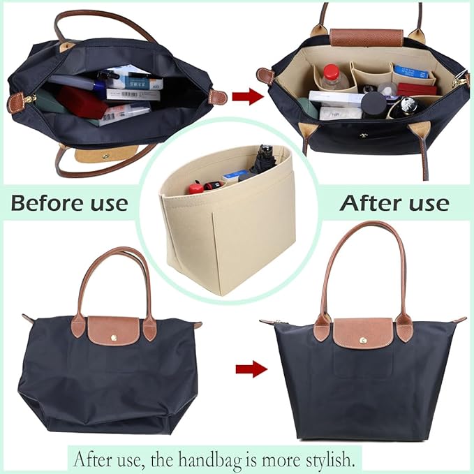 • CHANGE YOUR PURSE IN A SECOND:New purse organizer insert can meet your needs for different spaces or avoid stuffs mixing inside the organizer.change your purse in a second without rearranging the stuffs of your purse, allowing you go out early in the busy morning.