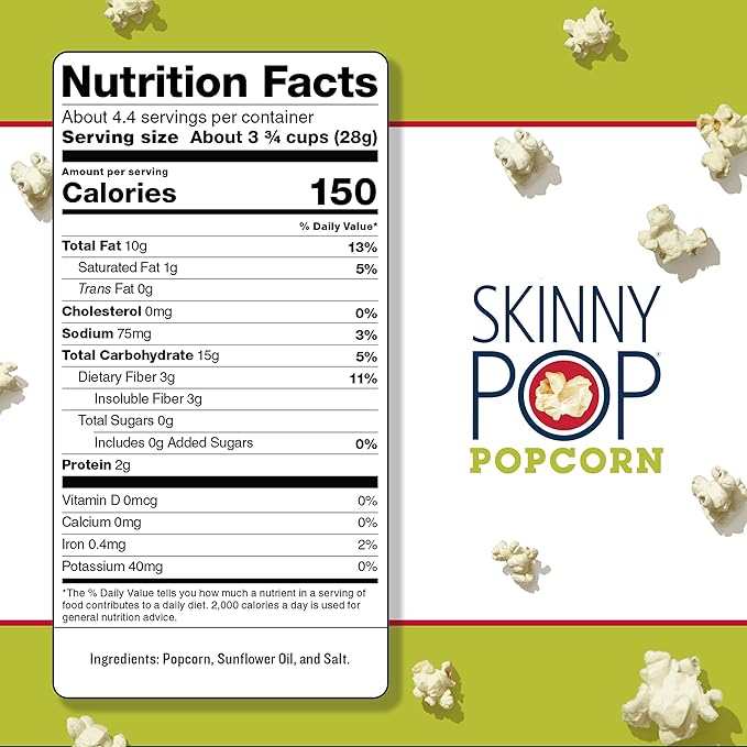 SkinnyPop Original Popcorn, 4.4oz Grocery Size Bags, Skinny Pop, Healthy Popcorn Snacks, Gluten Free